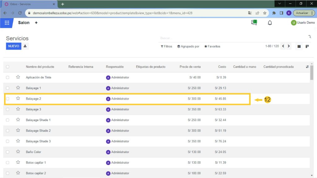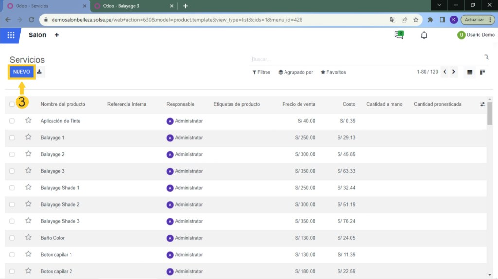 3) Para poder crear un nuevo servicio damos clic en "Nuevo".