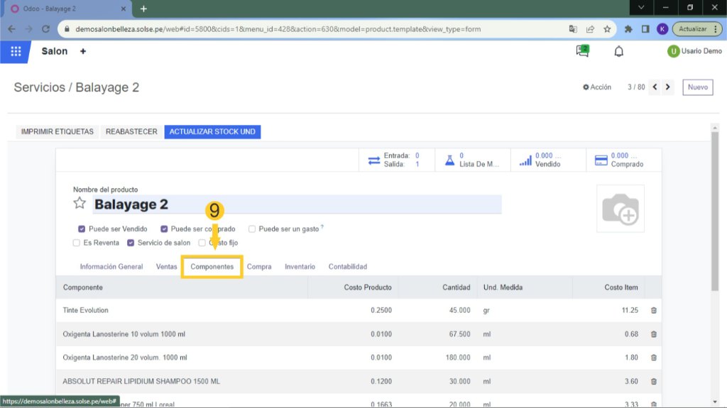 10) Podemos colocar los componentes que se llevara en ese servicio.