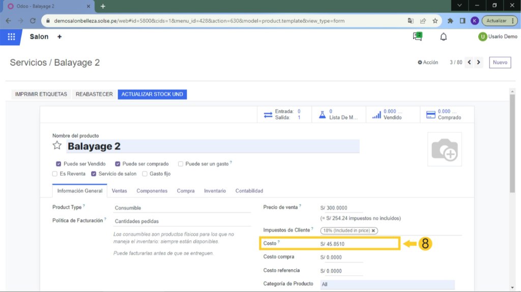 8) En el campo "Costo" Colocamos el costo del servicio.
