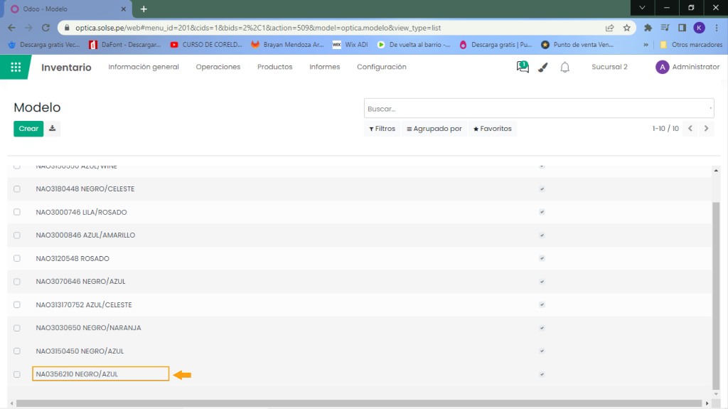10) Para agregar Modelos, hacemos clic en "Productos" y clic en "Modelo".
