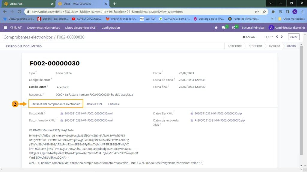 Este módulo Genera los datos XML, datos firmado XML y librerías, de la Emisión de comprobantes electrónicos a SUNAT – Perú, de los comprobantes que se emitan desde el POS.